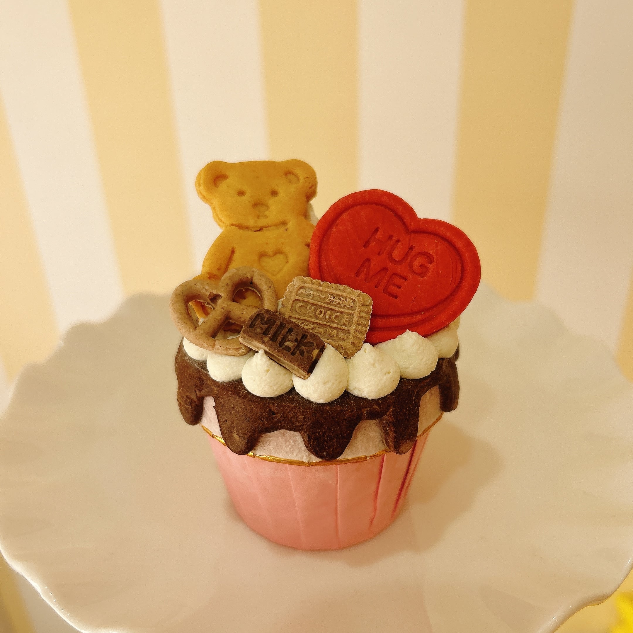 米粉バナナケーキにさつまいもペーストをサンドして、カッテージチーズクリームでデコレーションしております。